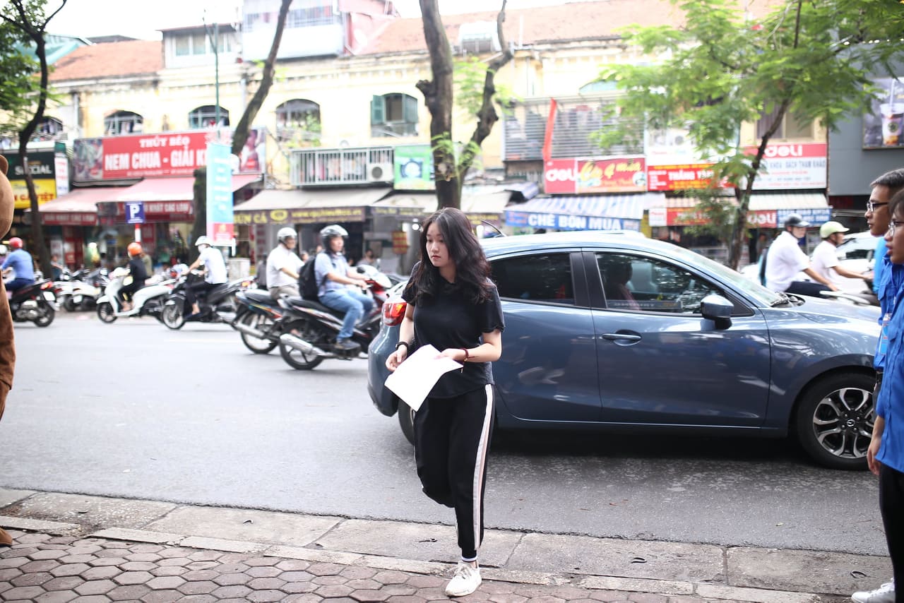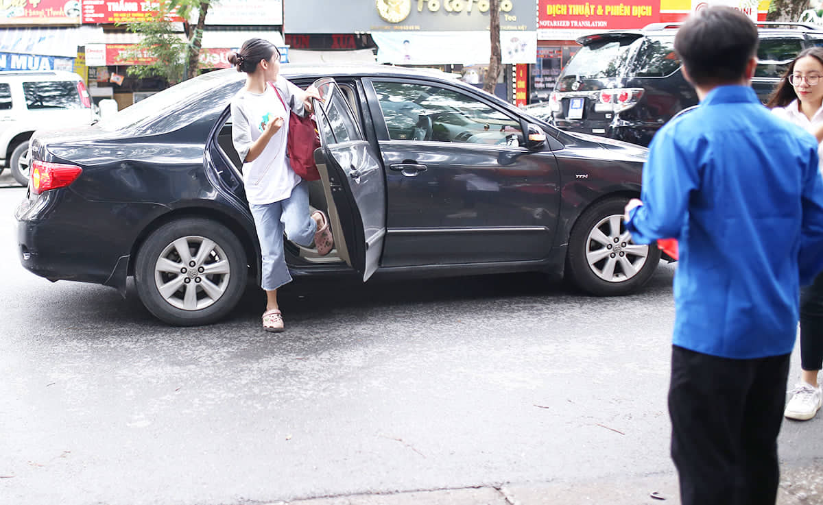 Nữ sinh này được phụ huynh đưa đón bằng ô tô đến điểm thi.