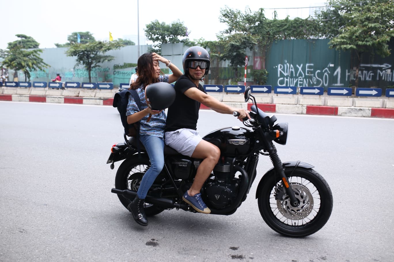 Thí sinh nữ được phụ huynh đưa đến điểm thi bằng mô tô “xịn”.