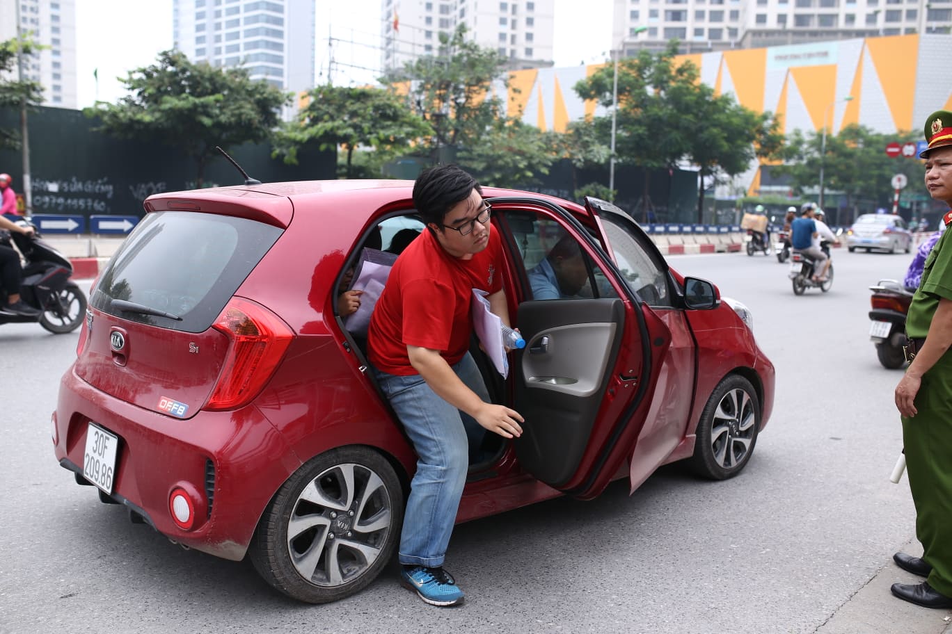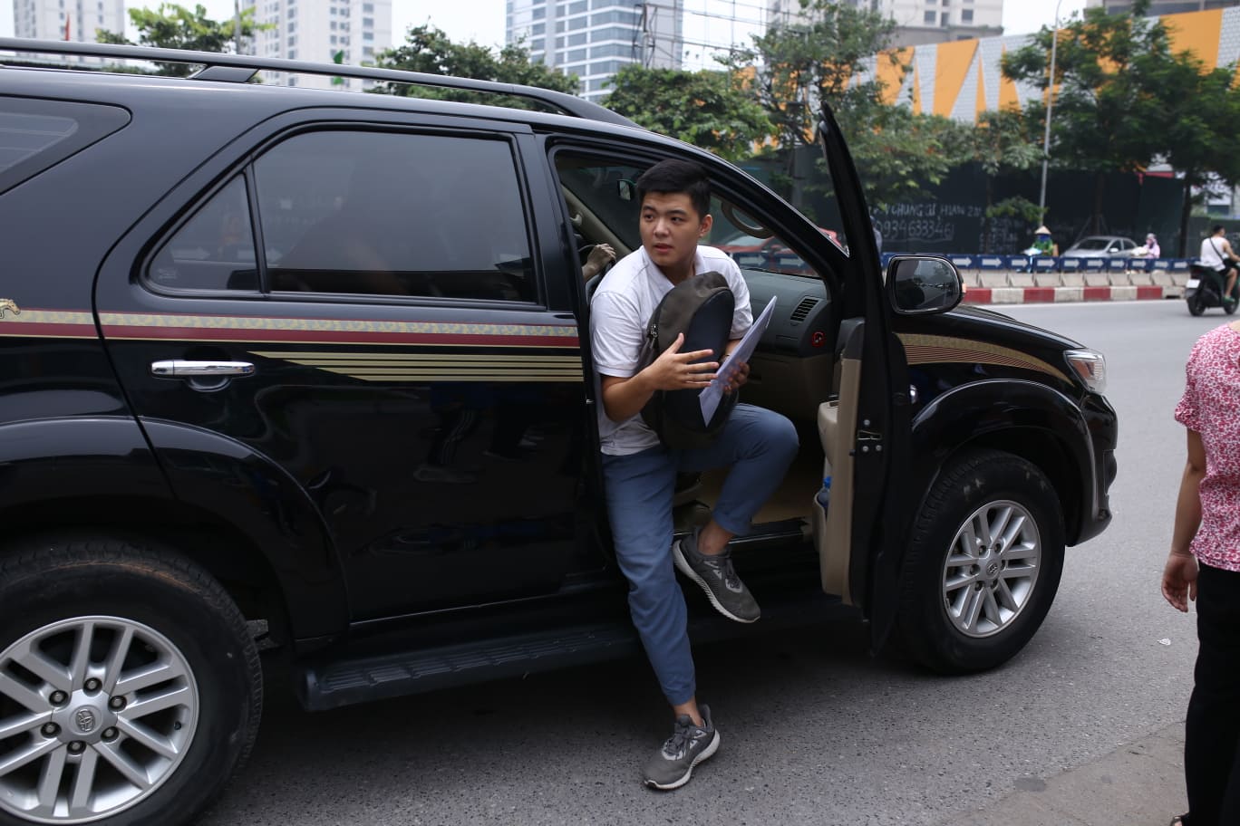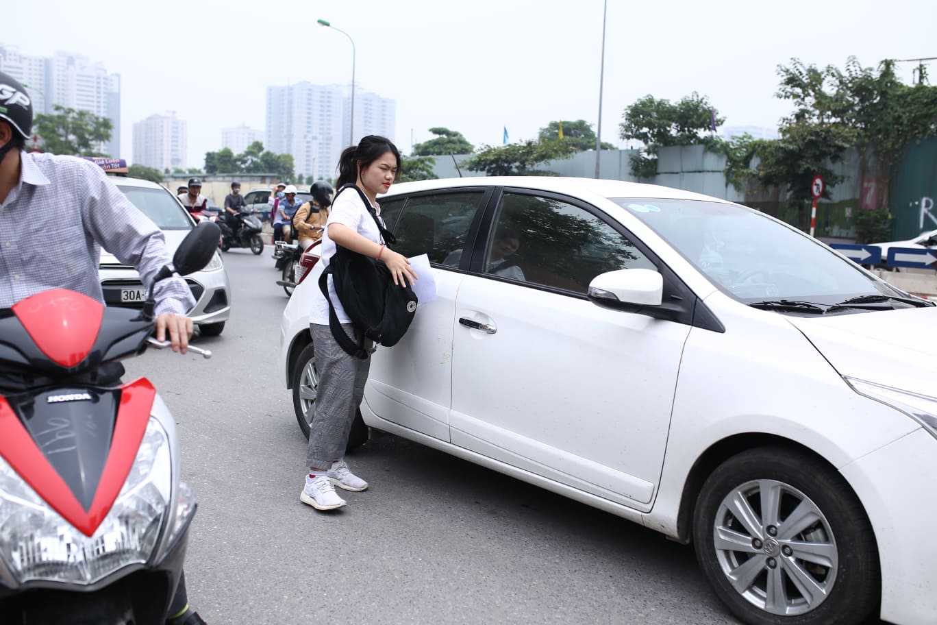 Các xế hộp nối đuôi nhau tấp vào lề đường cho thí sinh bước xuống.