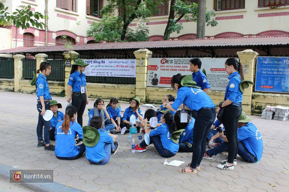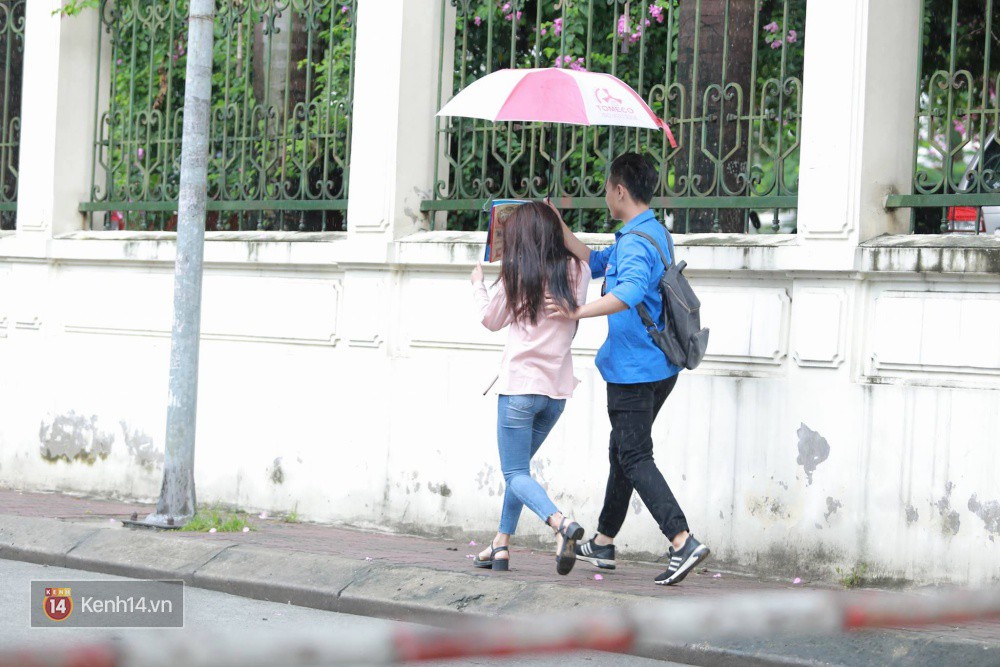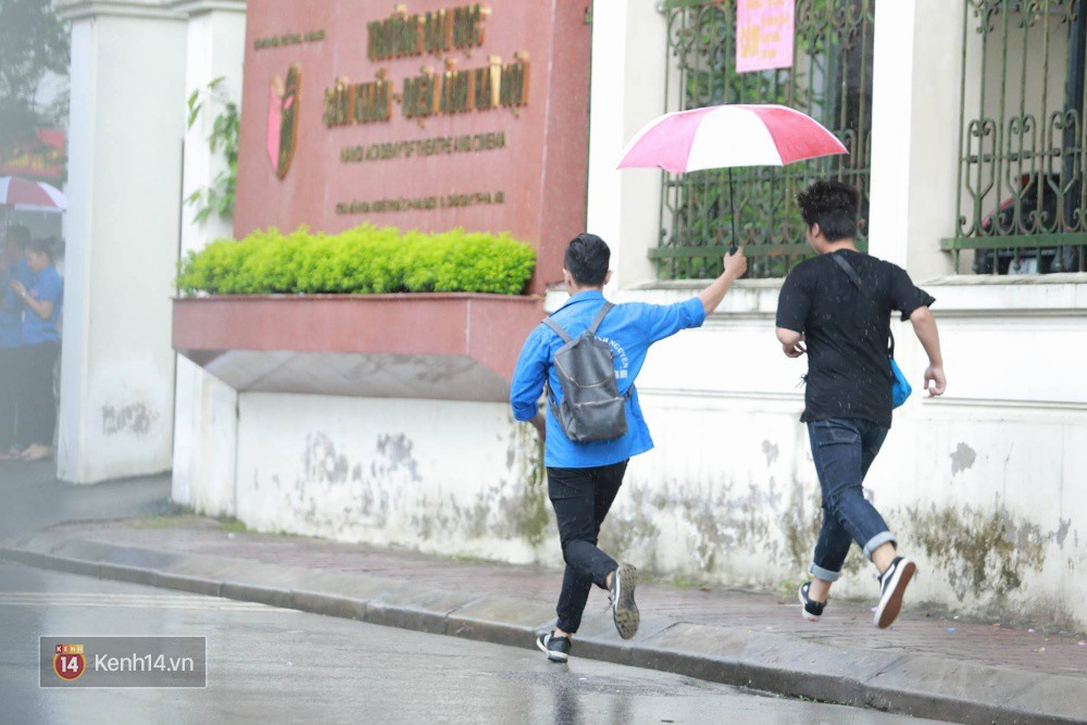 Tình nguyện viên không ngại mưa, chạy theo che ô cho các sĩ tử! Họ ướt cũng không sao nhưng thí sinh ướt sẽ ảnh hưởng đến việc làm bài