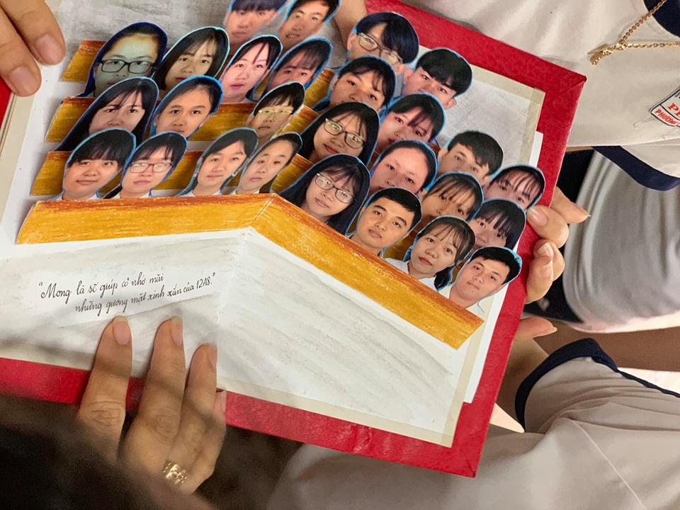 Quyển sổ độc đáo được các bạn học sinh trường THCS - THPT Phú Quới (Vĩnh Long) tự thiết kế để gửi tặng cô chủ nhiệm của mình vào ngày cuối cùng đến lớp
