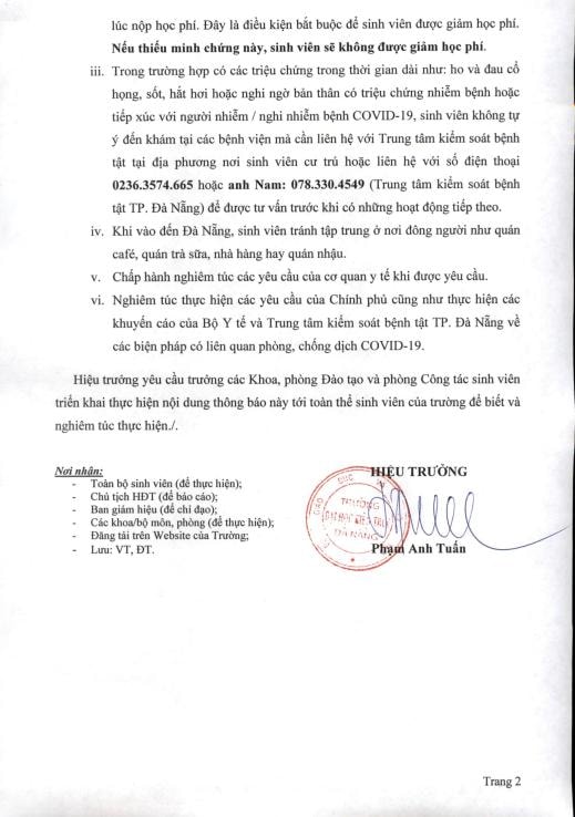 Thông báo của trường ĐH Kiến trúc Đà Nẵng. Ảnh chụp màn hình