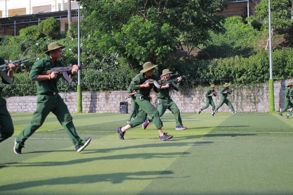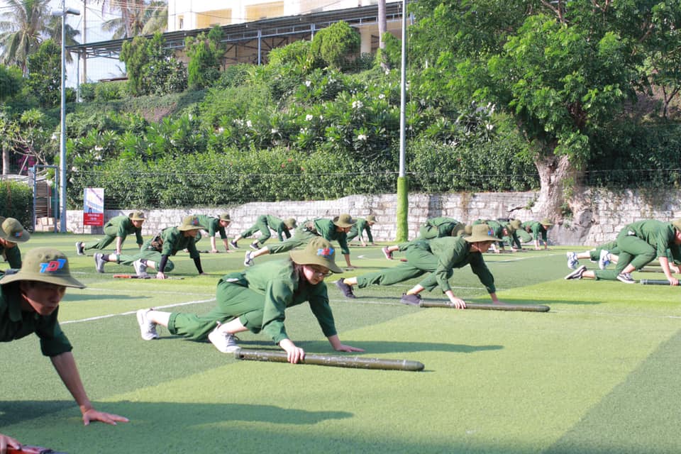 Các “chiến sĩ” được khoác trên mình bộ quân phục màu xanh của lính, tích cực tập luyện ở thao trường.