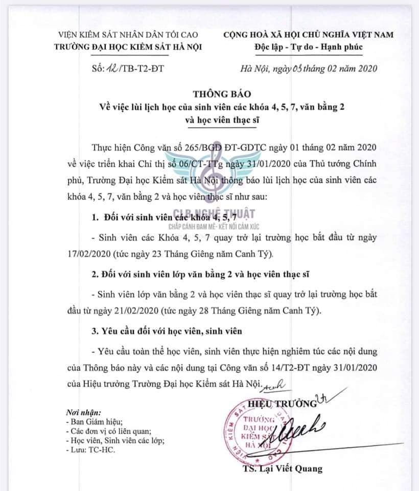 Thông báo trong ngày 3/2 của trường Đại học Kiểm sát Hà Nội
