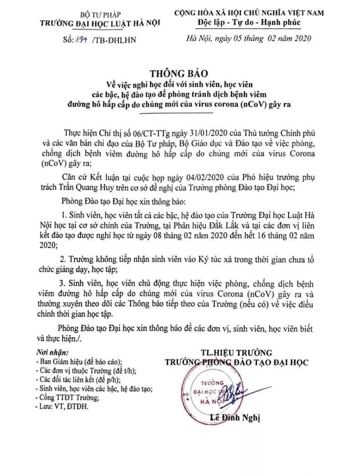 Thông báo của trường Đại học Luật Hà Nội