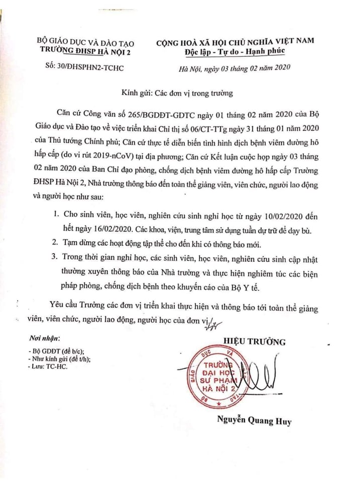 Thông báo mới đây của trường Đại học Sư phạm Hà Nội 2