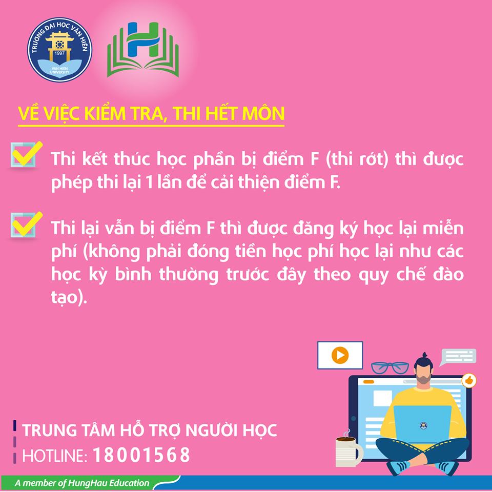 Đặc biệt hơn, sinh viên thi kết thúc học phần nếu bị điểm F (thi rớt) sẽ được phép thi lại một lần để cải thiện điểm F. Nếu sinh viên, học viên thi lại nhưng vẫn bị điểm F thì sẽ được đăng ký học lại miễn phí (không phải đóng tiền học phí học lại như các học kỳ bình thường trước đây theo quy chế đào tạo).