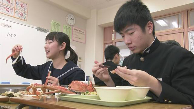 Video học sinh trường trung học cơ sở Iwami thưởng thức món cua tuyết đắt đỏ