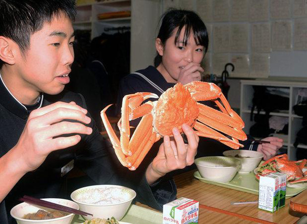 Theo hãng thông tấn NHK của Nhật Bản, vào ngày 12/2 vừa qua, một trường cấp 3 ở quận Iwami (tỉnh Tottori) đã cung cấp bữa trưa miễn phí gồm nguyên con cua tuyết khổng lồ cho toàn thể học sinh khối 12 nhân dịp các em chuẩn bị tốt nghiệp. Đây là một trong những việc làm diễn ra hàng năm và số cua được chế biến là do một hiệp hội ngư dân địa phương quyên tặng cho trường.