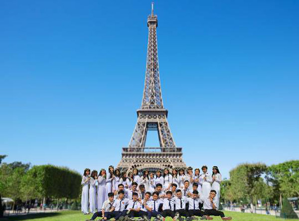 Các bạn này đã di chuyển đến Pháp với tháp Effiel.