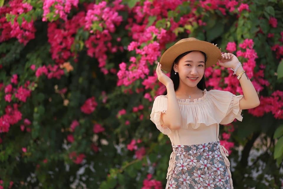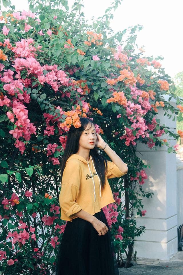 Giàn hoa giấy “thần thánh” cũng là địa điểm thường xuyên được hội “trai xinh gái đẹp” check in