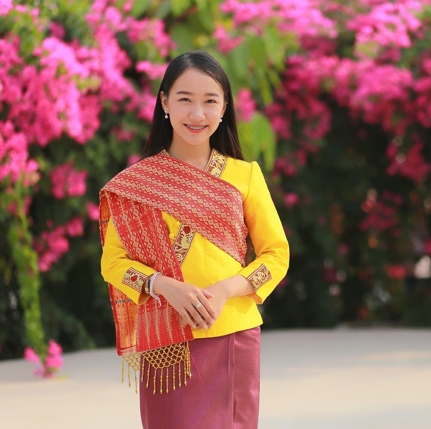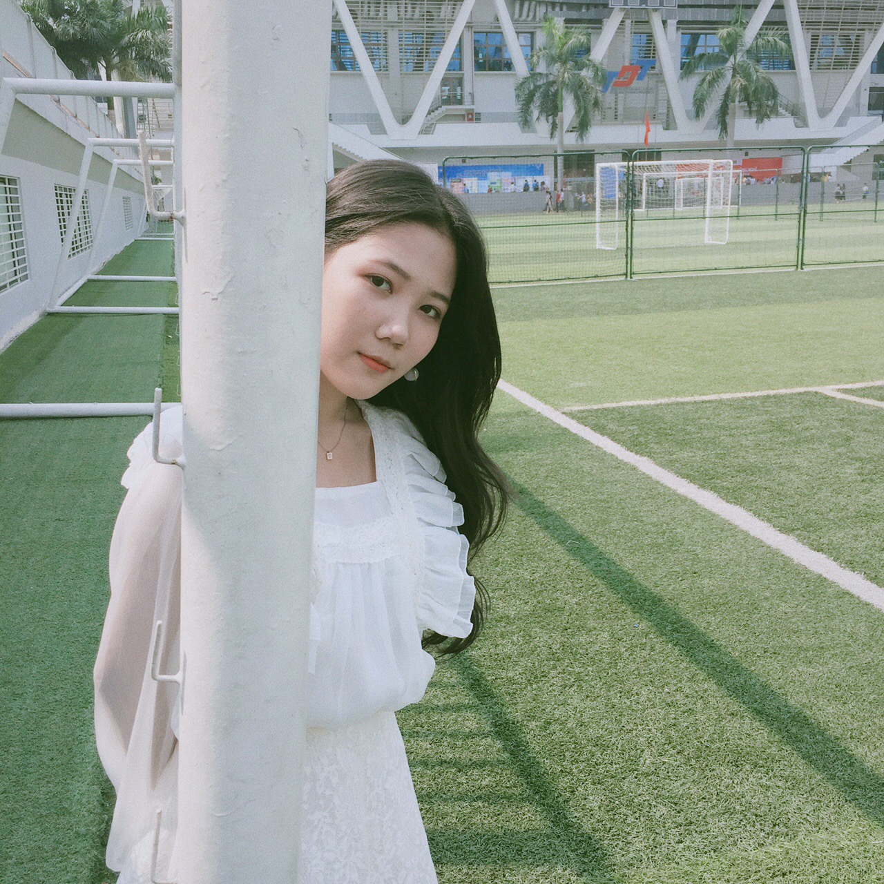 Chọn một bức tường tại khu nhà học, Hoa Khôi ĐH Tôn Đức Thắng - Bùi Tường Vân toát lên nét xinh đẹp rạng ngời nhờ nụ cười tươi tắn, trong trẻo.