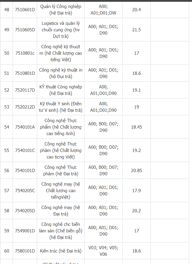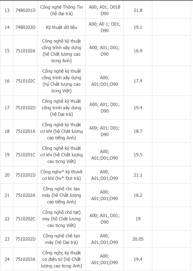 Tuy nhiên, đó chỉ là điểm sàn để nhận hồ sơ. Thực tế, điểm chuẩn các ngành học của ngôi trường này khá cao. Theo đó, năm học vừa qua, điểm chuẩn thấp nhất thuộc về ngành Kỷ thuật nữ công (hễ đại trà) với mức điểm là 16,7. Ngành học lấy điểm cao nhất là Công nghệ Thông Tin (hệ đại trà) với số điểm đầu vào là 21,8.