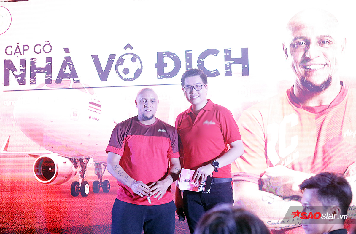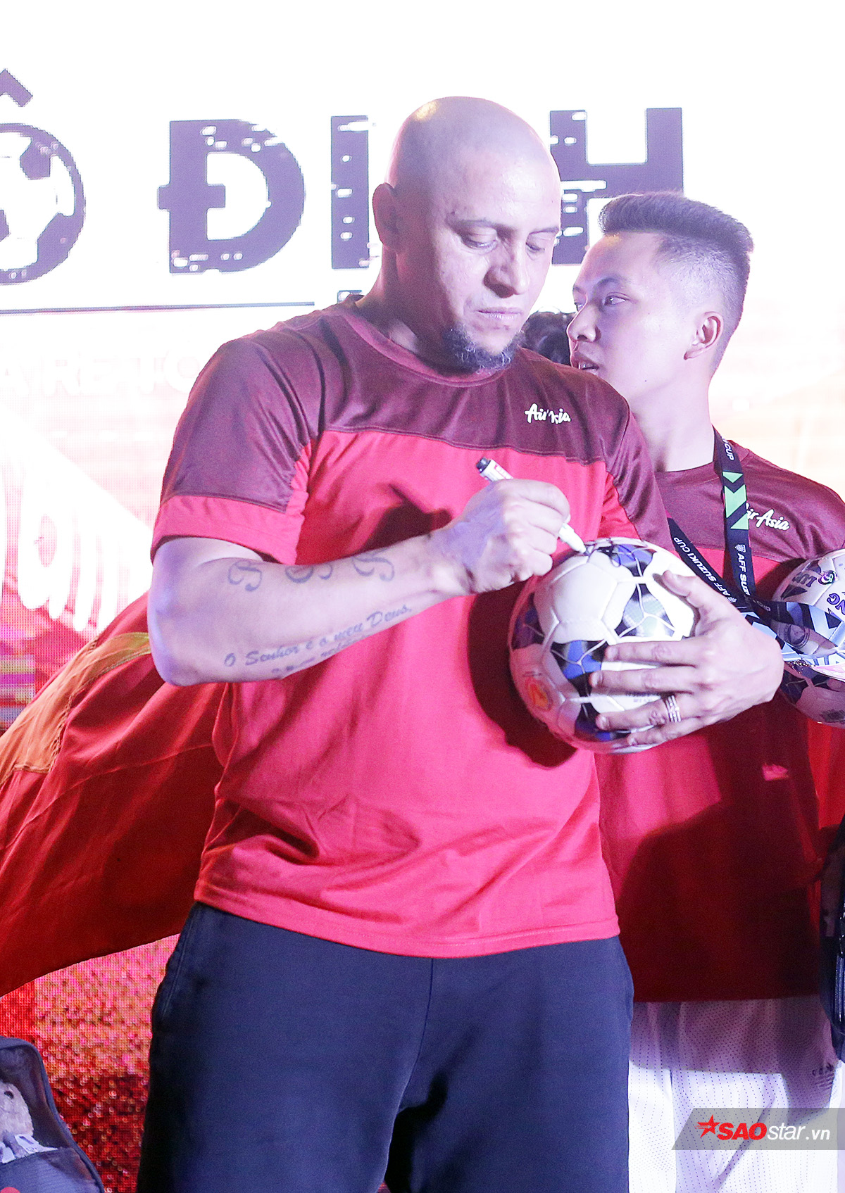 Roberto Carlos thân thiện giao lưu, ký tặng người hâm mộ Việt Nam. Ông tỏ ra bất ngờ và choáng ngợp với sự cuồng nhiệt của fan bóng đá Việt.