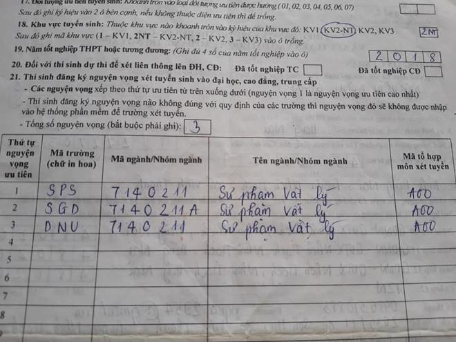 Thí sinh Nguyễn Minh Quân đăng ký nguyện vọng ngành Sư phạm Vật lý vào 3 trường đại học nhưng đều trượt, trong đó có ĐH Đồng Nai. Ảnh: NVCC.