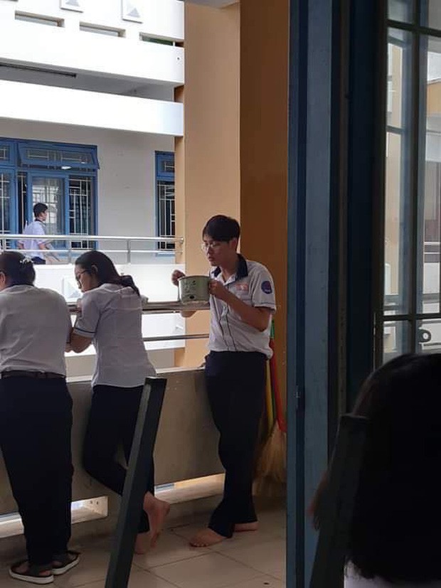 Sẽ không có gì đáng nói nếu như nam sinh này thưởng thức món “lẩu mì” tại nhà, thế nhưng vì muốn thay đổi môi trường, đồng thời tạo ra những khoảnh khắc hài hước, đáng nhớ, cậu bạn nhà ta đã quyết định “lê lếch” từ hành lang vào tận phòng học.