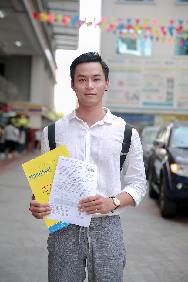 Nam sinh ĐH HUTECH gây chú ý trong ngày đầu hướng dẫn tân sinh viên làm thủ tục nhập học.