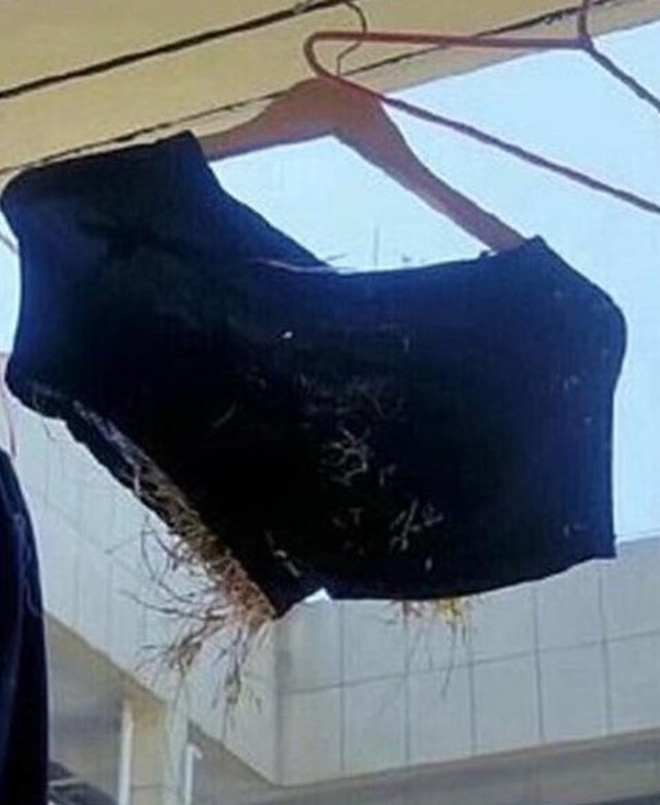 Chiếc quần đùi sau những ngày tháng bị bỏ quên tại KTX đã trở thành nơi trú ngụ của những chú chim.