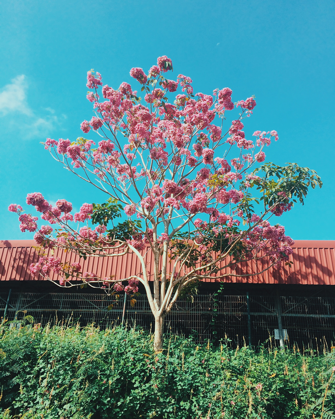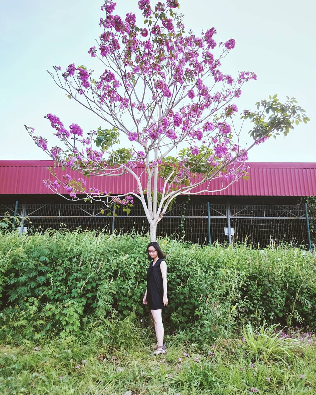 Dù chỉ được trồng đơn lẻ, nhưng cây kèn hồng nơi đây lại có vẻ đẹp riêng thu hút không kém dàn kèn hồng ở khu Sư phạm ĐH Cần Thơ là bao.