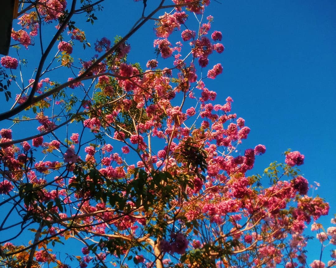 Nổ rộ được vài ngày nay, có những chùm hoa kèn hồng đã đến ngày tàn phai dưới ánh nắng gay gắt của mùa hè.
