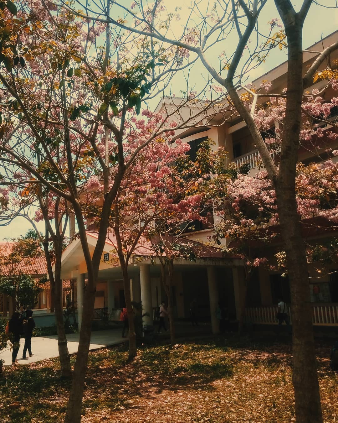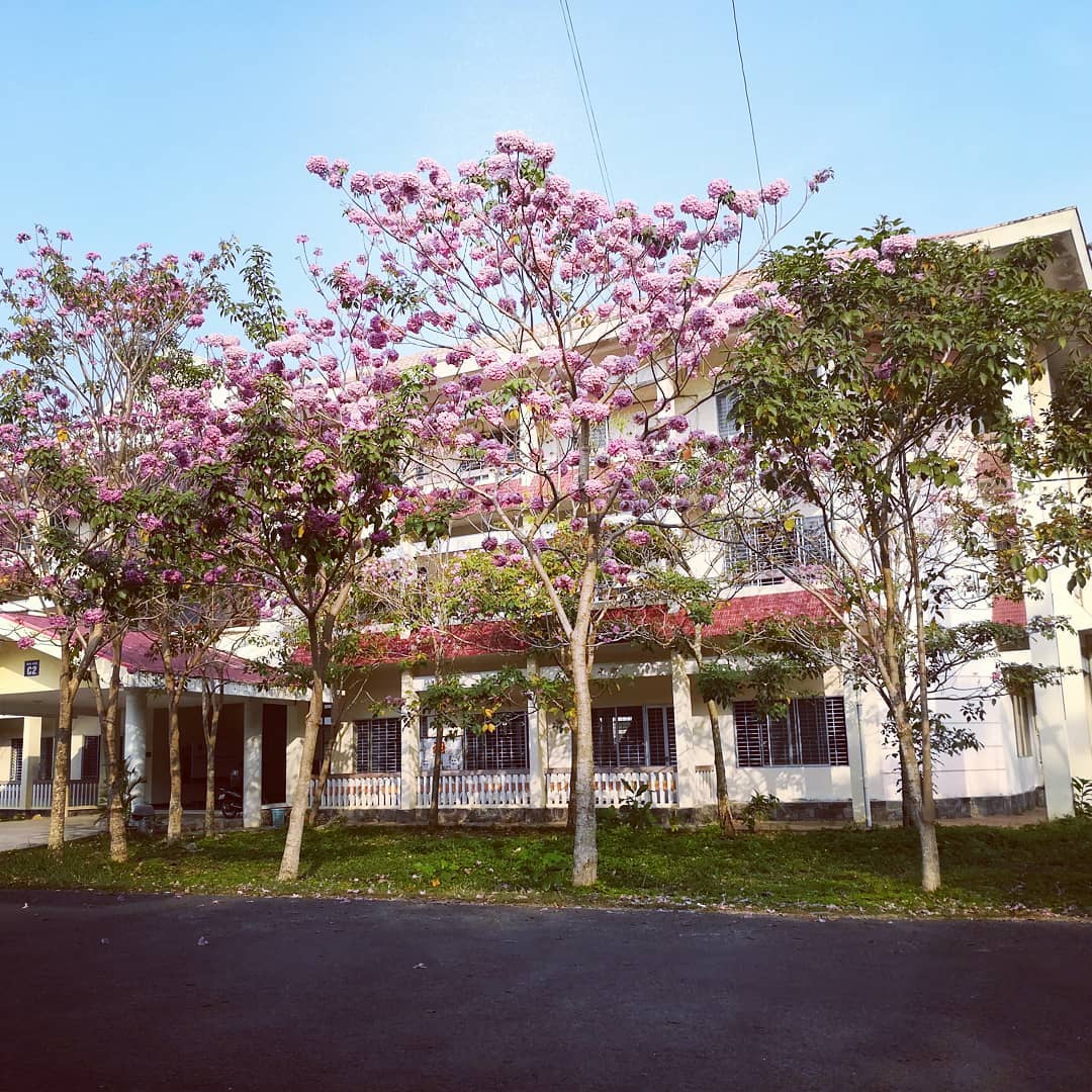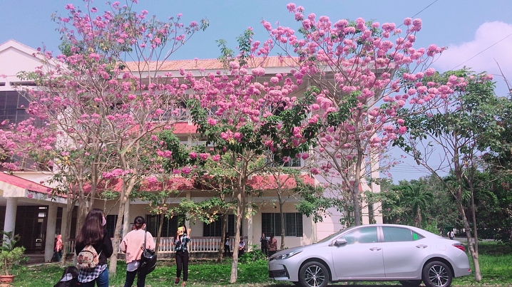 Khuôn viên ĐH Cần Thơ thêm phần lãng mạn bởi sắc hồng bao phủ.