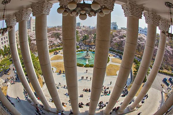 Đại học KyungHee được biết đến như một điểm tham quan đẹp nhất ở Seoul vào mùa xuân khi hàng ngàn hoa anh đào nở trắng khắp sân trường.