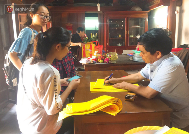 Ngay từ sáng sớm, phòng sắp lễ và bàn viết sớ đã tấp nập từng đoàn sĩ tử vào ra, nhiều phụ huynh cẩn thận còn mang hoa quả, bánh kẹo, xôi giò, vàng mã đến kính lễ dâng hương, cầu mong các bậc tiền nhân phù hộ đạt kết quả tốt trong kỳ thi sắp tới.
