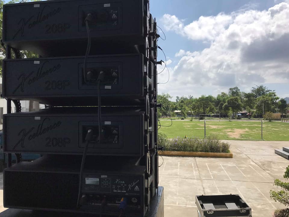Hệ thống âm thanh nhà trường chuẩn bị.