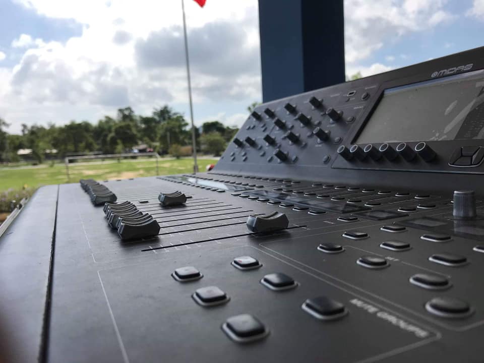 Dàn âm thanh chuyên nghiệp phục vụ tường thuật trực tiếp bóng đá.