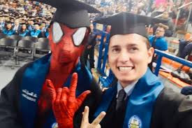 Tuy nhiên, thay vì lựa chọn trang phục truyền thống, nhiều sinh viên sáng tạo đã nảy ra những ý tưởng vô cùng độc đáo. Cụ thể là mới đây trong buổi lễ tốt nghiệp, nam sinh Hiram Yahir Salas Romero (22 tuổi, người Mexico) khiến cả hội trường bật cười khi bước lên nhận bằng tốt nghiệp trong trang phục người nhện phiên bản biến tấu kết hợp với áo cử nhân.