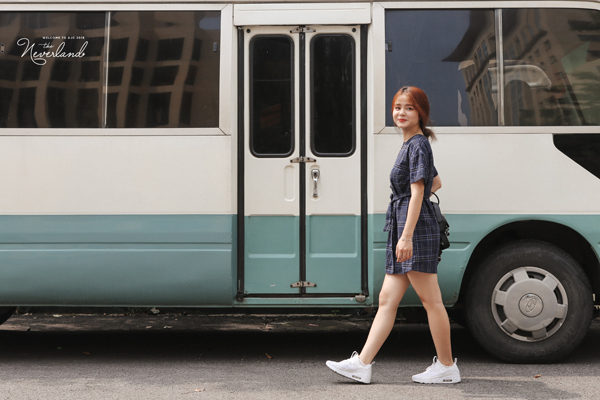 Bạn Bùi Thị Thu Hà - Kinh tế và quản lý CLC K38 chọn cho mình một chiếc váy với họa tiết kẻ cùng tone màu lạnh tôn làn da trắng sáng của mình trong ngày đến giảng đường.