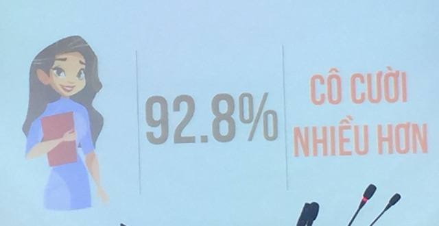 Có tới 92,8% học sinh mong thầy cô cười nhiều hơn.