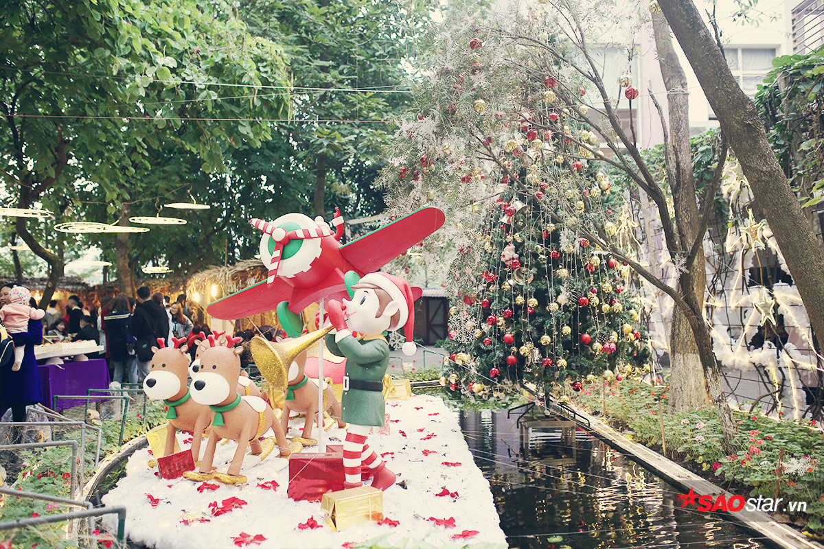 Theo các sinh viên trong trường cho biết, năm nào đến gần Noel, khu vườn cũng sẽ được trang trí lộng lẫy, và năm nay chính là năm được đầu tư nhất. Tự tay các bác bảo vệ và quản lý trong trường đã treo đèn, gắn từng món đồ trang trí, ở khắp nơi trong vườn.