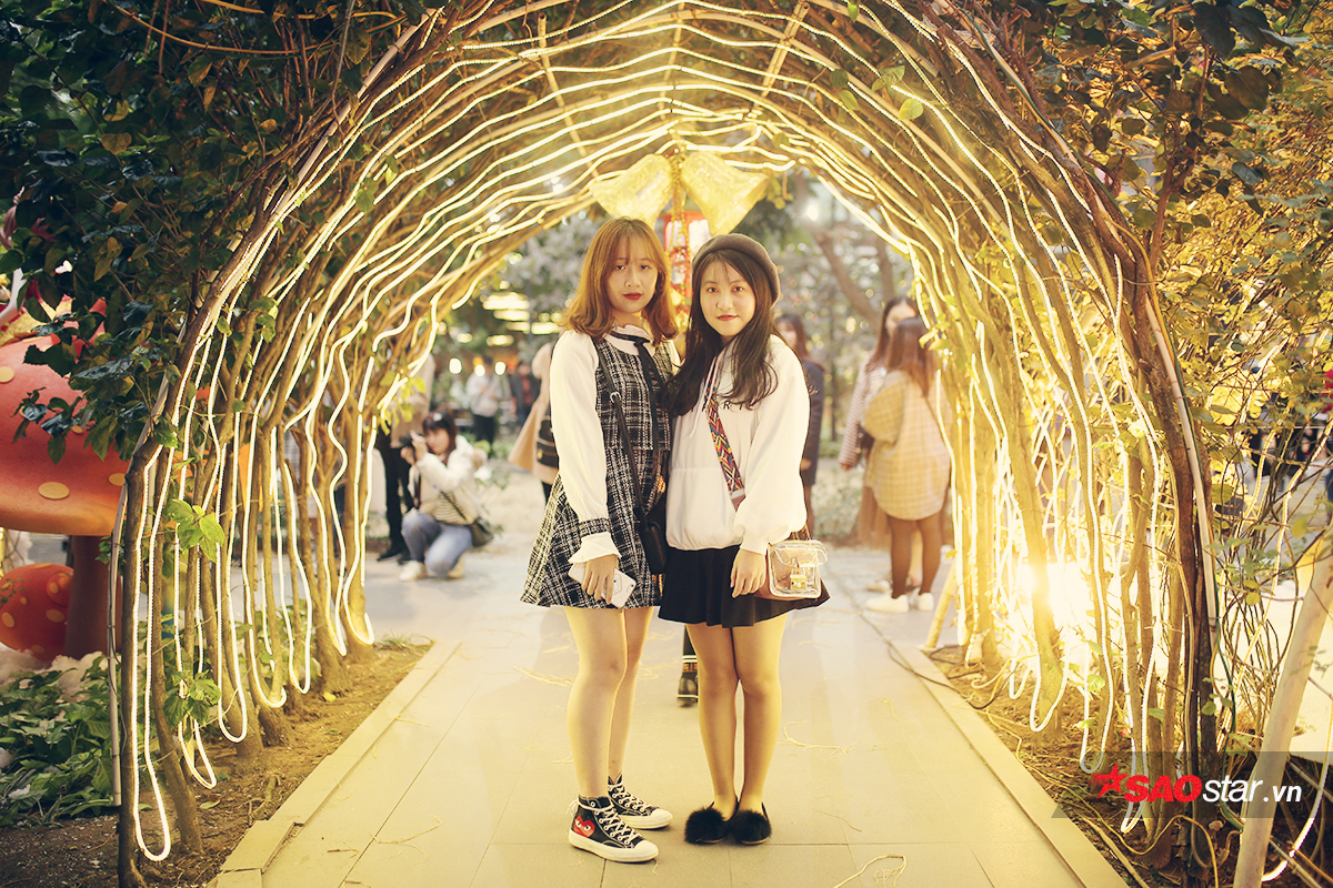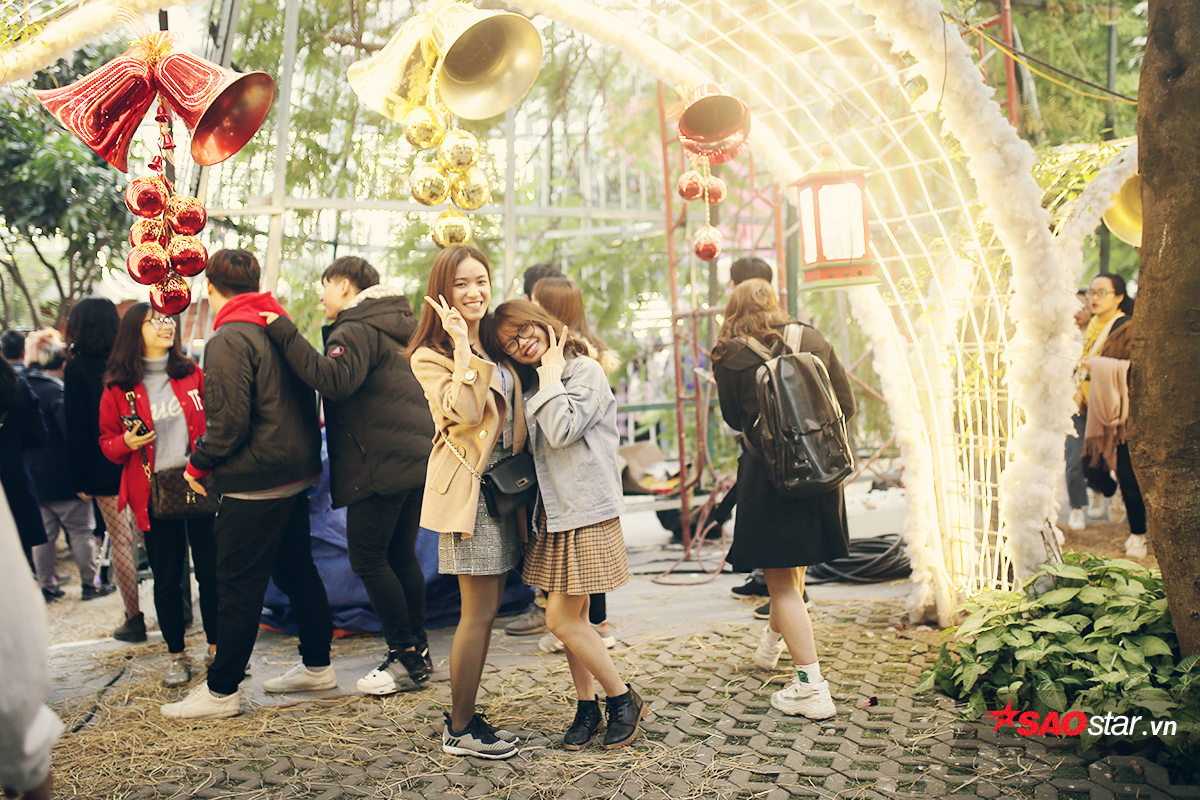 Khu vườn vốn là nơi thư giãn, tán gẫu với rất nhiều cây xanh thơ mộng, nay được khoác lên mình sắc xanh - đỏ - trắng đặc trưng của dịp lễ Giáng sinh nên càng thu hút các bạn sinh viên.