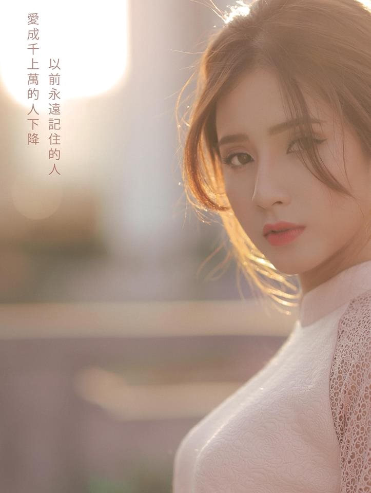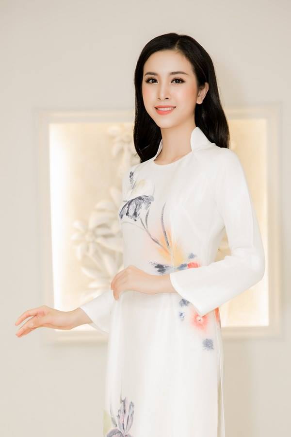 Thúy An đẹp trong trẻo trong tà áo dài truyền thống.
