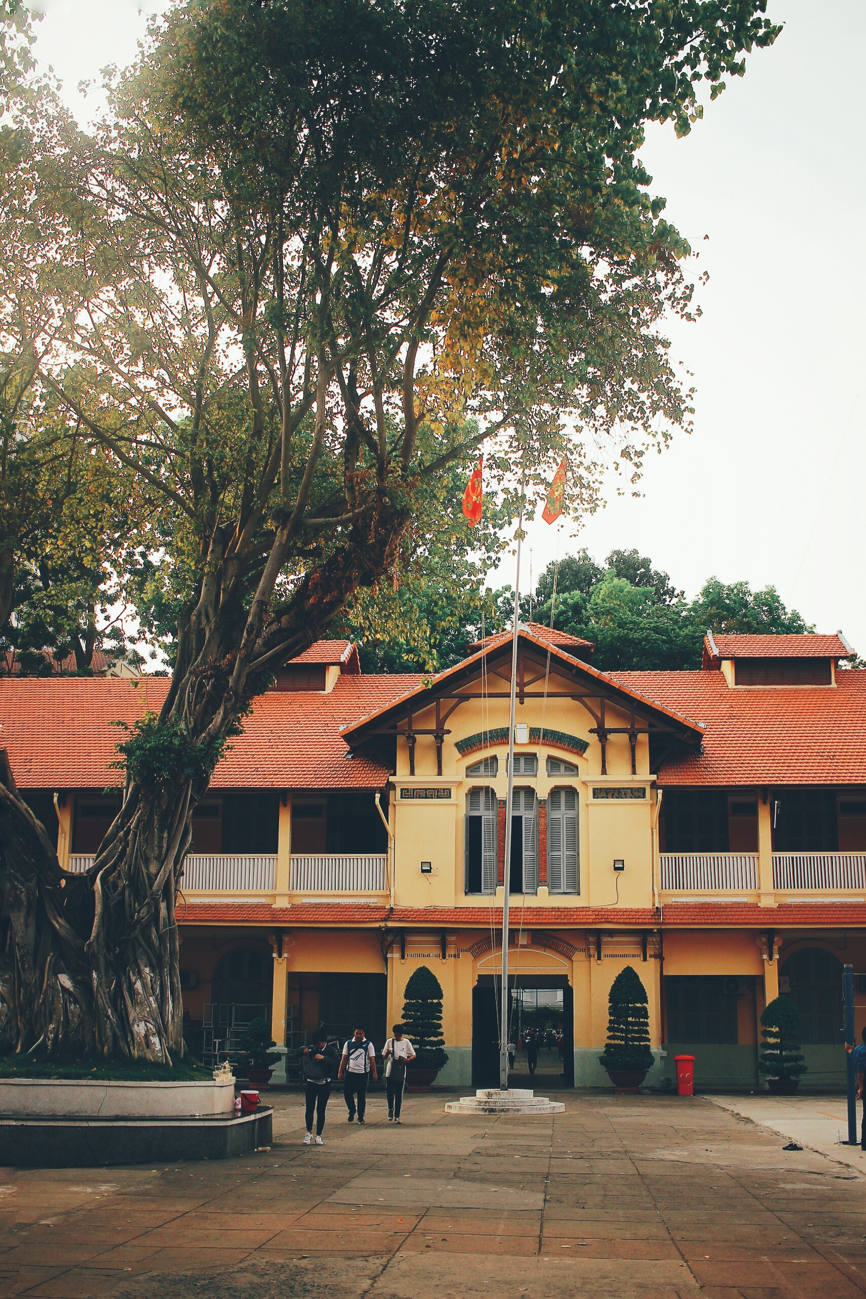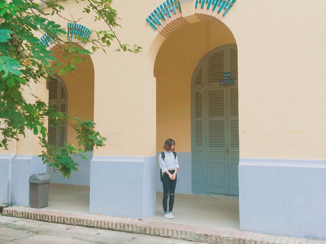 Màu vàng cũ kỹ khiến ngôi trường trở nên đặc trưng và mang đậm phong cách Pháp.