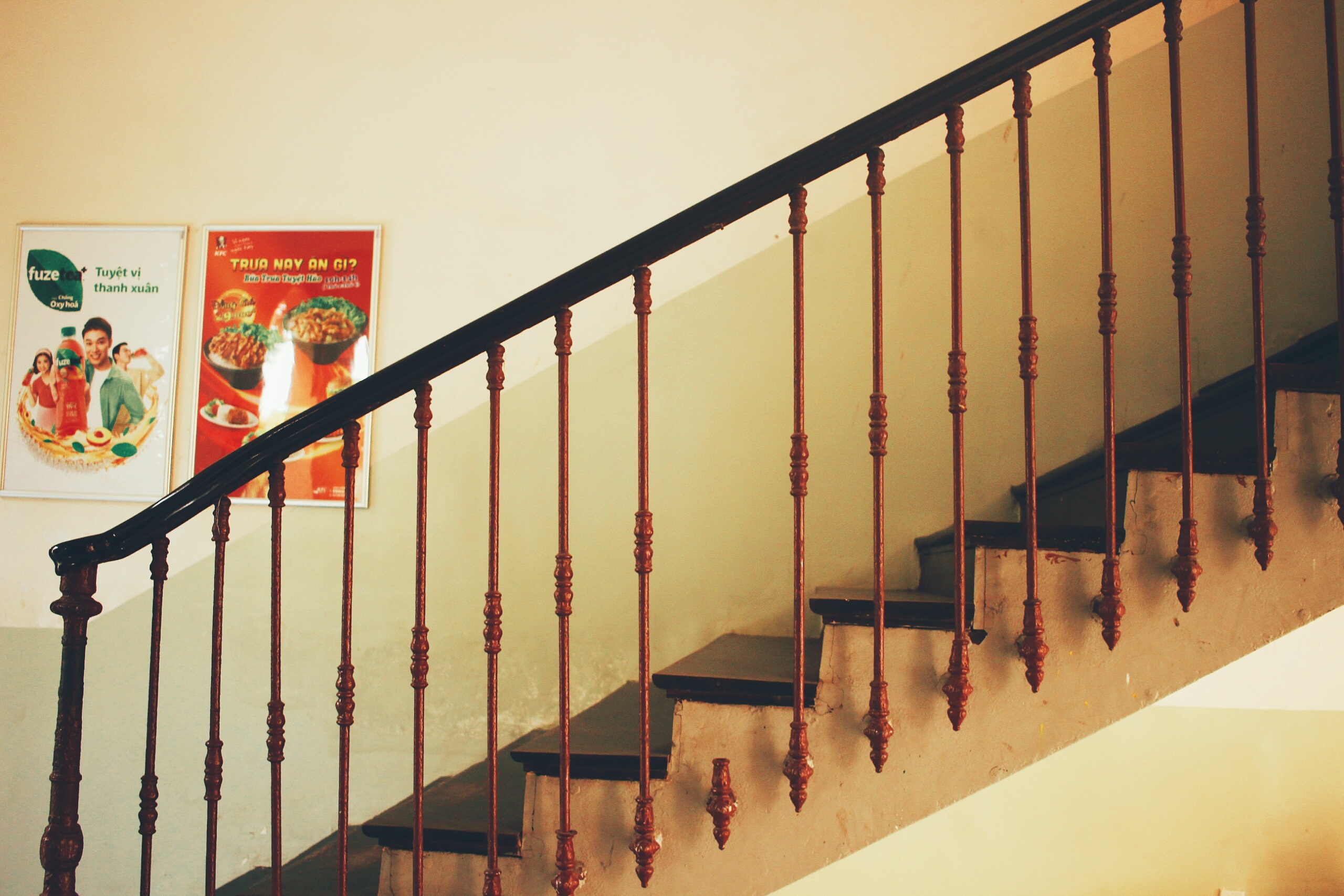 Một góc cầu thang gỗ của trường.