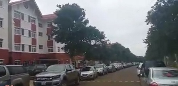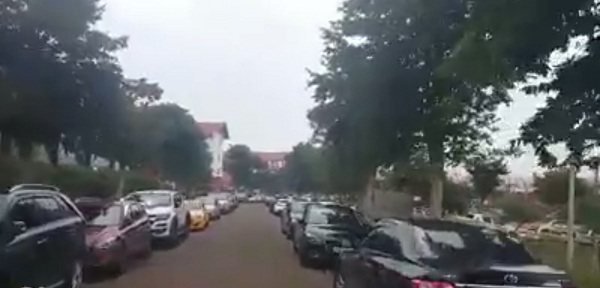 Hàng trăm chiếc xe ô tô được phụ huynh đỗ trong trường.