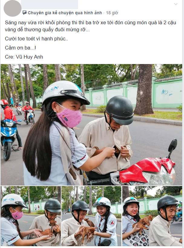Theo đó, một thí sinh nữ sau khi rời khỏi phòng thi đã ngay lập tức nhận được những niềm vui bất ngờ từ người cha của mình. Cụ thể, người cha mang đến tặng cô con gái 2 chú chó nhỏ, được cha ôm ấp, giấu trong áo, khi gặp con gái, cha từ từ mở món quà khiến nữ sinh cười “tít mắt” vì hạnh phúc.