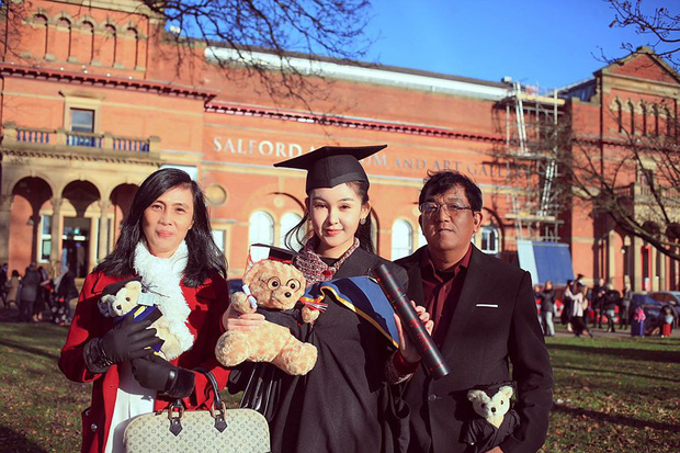 Bố Mẹ “tháp tùng” Ngân Anh sang nhận bằng tốt nghiệp.