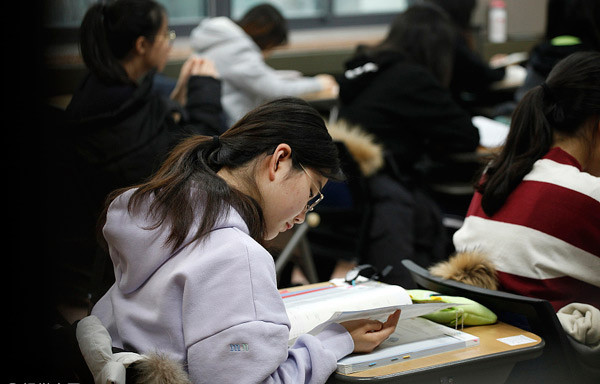 Người Hàn Quốc quan niệm nếu học sinh ngủ 5 tiếng mỗi đêm, hãy quên việc vào đại học đi. Ảnh: Chinadaily.