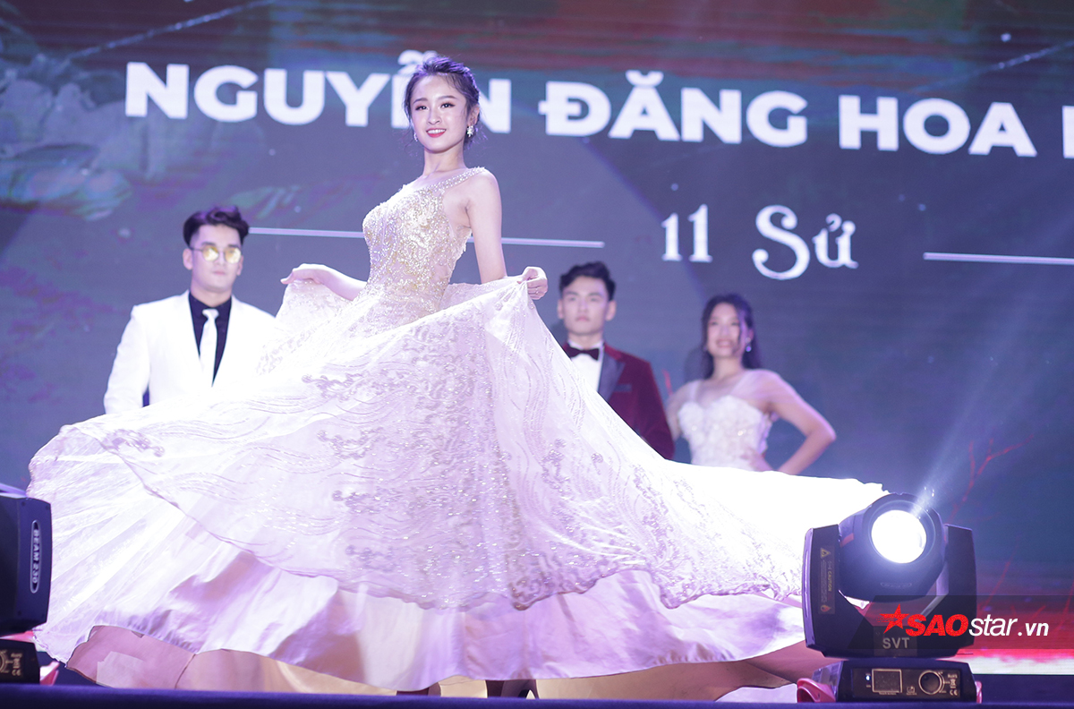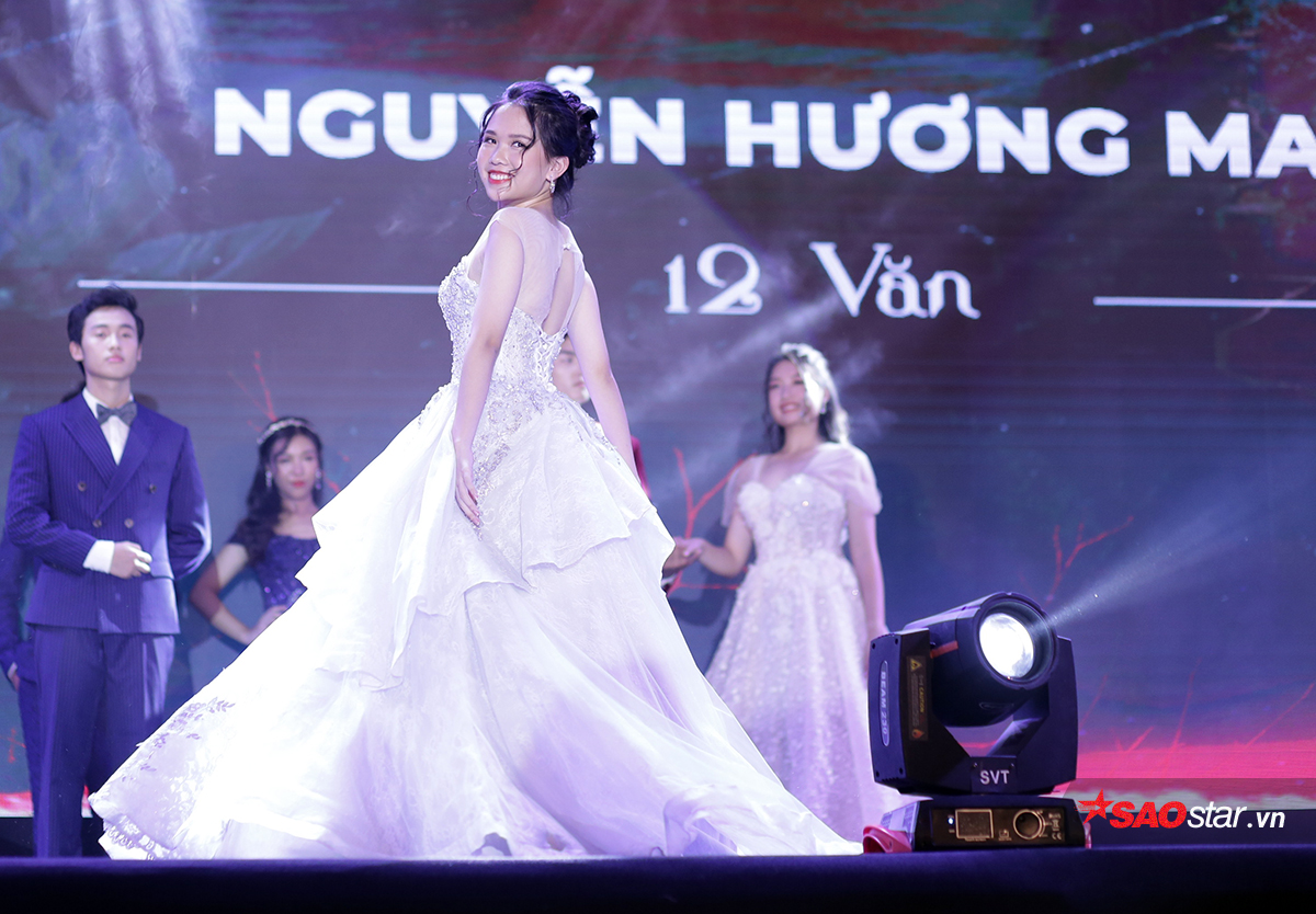 Trước câu hỏi ứng xử: “Bạn có quan điểm như thế nào về lòng nhân ái?”, Hoa Huyền đã đưa ra câu trả lời chân thành: “Lòng nhân ái theo em là một thứ tình cảm của con người. Mỗi người khi sinh ra có thể có khoảng cách khác nhau, tính cách khác nhau, và lòng nhân ái là thứ giúp chúng ta có thể có cuộc sống tốt đẹp hơn, kết nối mọi người hơn. Lòng nhân ái là thứ không thể học tập để có được, mà phải tồn tại một cách tự nhiên trong mỗi chúng ta.” Với câu hỏi tiếp theo: “Vẻ đẹp tiềm ẩn nào của Ngày hội anh tài để lại ấn tượng nhất trong lòng bạn?”, nữ sinh chuyên Sử đã nêu lên quan điểm: “Theo em, đằng sau những hào quang của đêm chung kết hôm nay, đó là sự nỗ lực của không chỉ riêng em, không chỉ riêng 10 đại sứ mà còn là sự chung sức của tất cả học sinh, thầy cô, cô chú công nhân và các vị khách mời. Đối với em, vẻ đẹp chính là khi mọi người ngồi lại đoàn kết với nhau, nghiêm túc nhắc nhở nhau hoàn thành công việc để có thể có kết quả đẹp đẽ, xứng đáng nhất. Đối với em, vẻ đẹp tiềm ẩn của Ngày hội anh tài chính là lòng nhiệt huyết của tất cả chúng ta.”