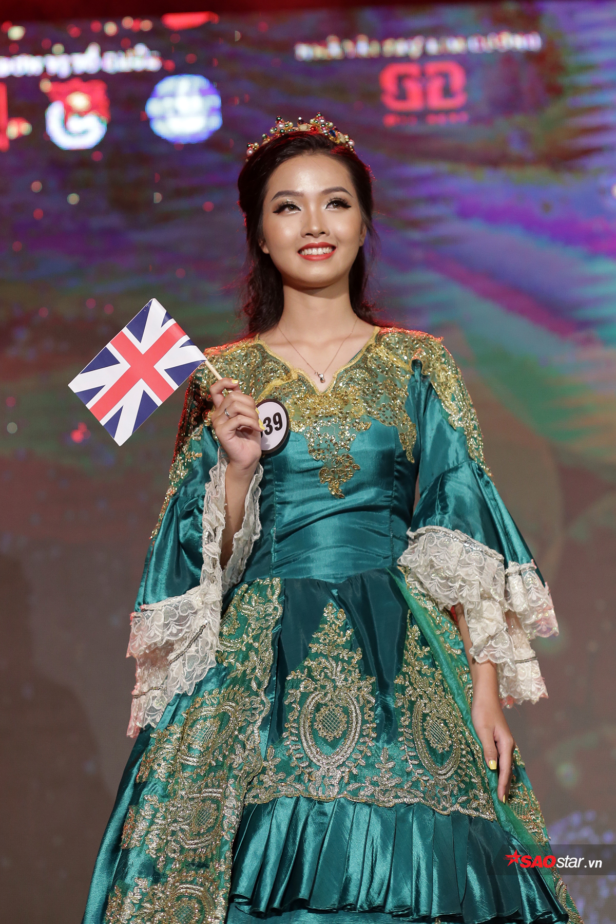 Trong màn trình diễn chào khán giả đầu đêm chung kết, Khánh Ly thể hiện bộ trang phục truyền thống của giới quý tộc nước Anh.