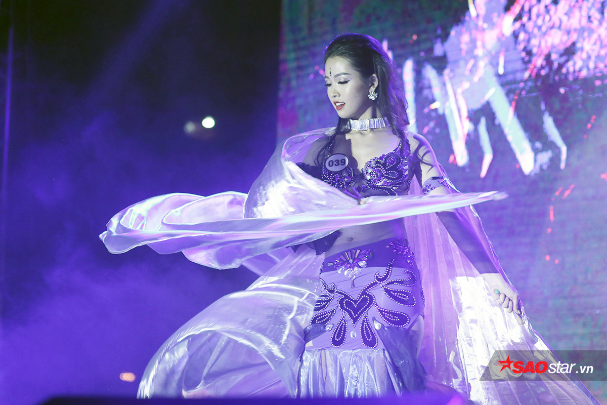 Là một cô gái có tình yêu lớn với nghệ thuật múa và đã theo đuổi bộ môn này nhiều năm, Khánh Ly tự tin thể hiện vũ điệu belly dance nóng bỏng trên sân khấu phần thi tài năng trong đêm chung kết