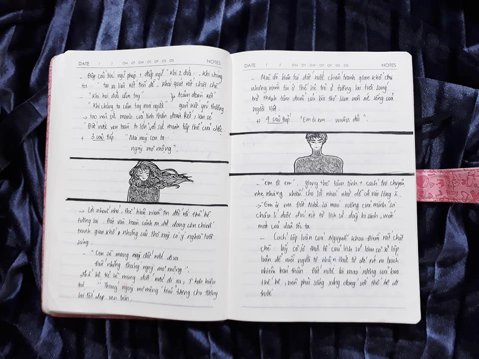 Sau khi cuốn vở soạn văn của Vân Anh được chia sẻ trên mạng xã hội, ngoài những lời tấm tắc khen ngợi ra cũng có không ít người cho rằng việc vẽ lên sách vở như vậy là không phù hợp với tiêu chí “vở sạch - chữ đẹp”. Cùng ngắm nhìn thêm những hình ảnh khác về cuốn vở soạn văn tuyệt đẹp này để tự tìm cảm hứng cho mình nhé!
