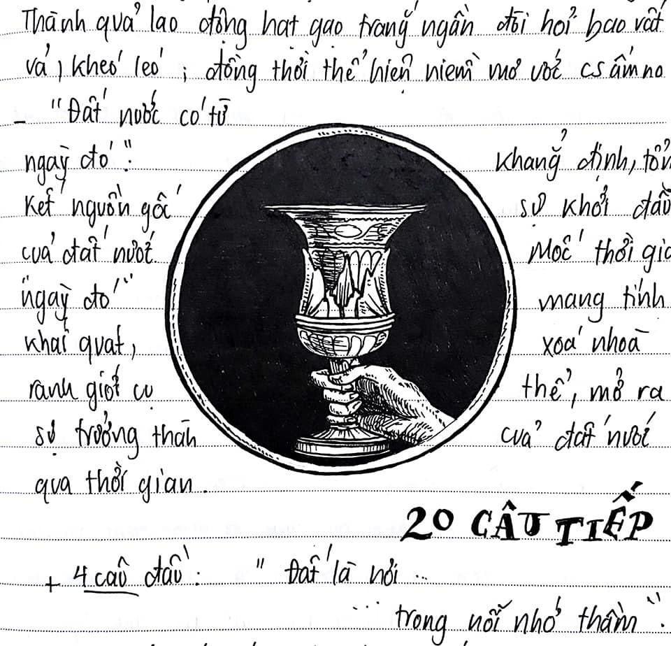 Vẫn là nhiệm vụ trả lời các câu hỏi cho trước trong sách giao khoa, thế nhưng giờ đây quyển vở soạn văn trở nên sống động hơn hẳn nhờ những hình vẽ bay bổng, sáng tạo và đẹp mắt. Bên cạnh đó, đây không chỉ là những hình vẽ cho vui mà còn có liên quan mật thiết đến nội dung bài học, thể hiện sự nghiên cứu tìm tòi tác phẩm một cách rất nghiêm túc của người vẽ nên chúng. Có lẽ nếu sở hữu một quyển vở soạn văn như thế này, rất nhiều người sẽ muốn ngày nào cũng có môn văn để được mở nó ra khi học bài.
