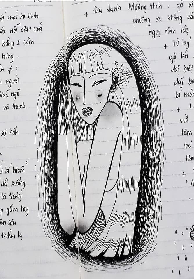 Trâm cho biết phong cách vẽ của mình không giới hạn trong bất cứ concept nhất định nào, có khi nó mang ý nghĩa nhưng có lúc chỉ là vài đường nghuệch ngoạc. Đây cũng là cách Trâm xả stress khi cảm thấy việc học quá căng thẳng. Mỗi hình vẽ, Vân Anh chỉ tốn khoảng 5-10 phút để hoàn thành nên cũng không mất nhiều thời gian cho việc học.