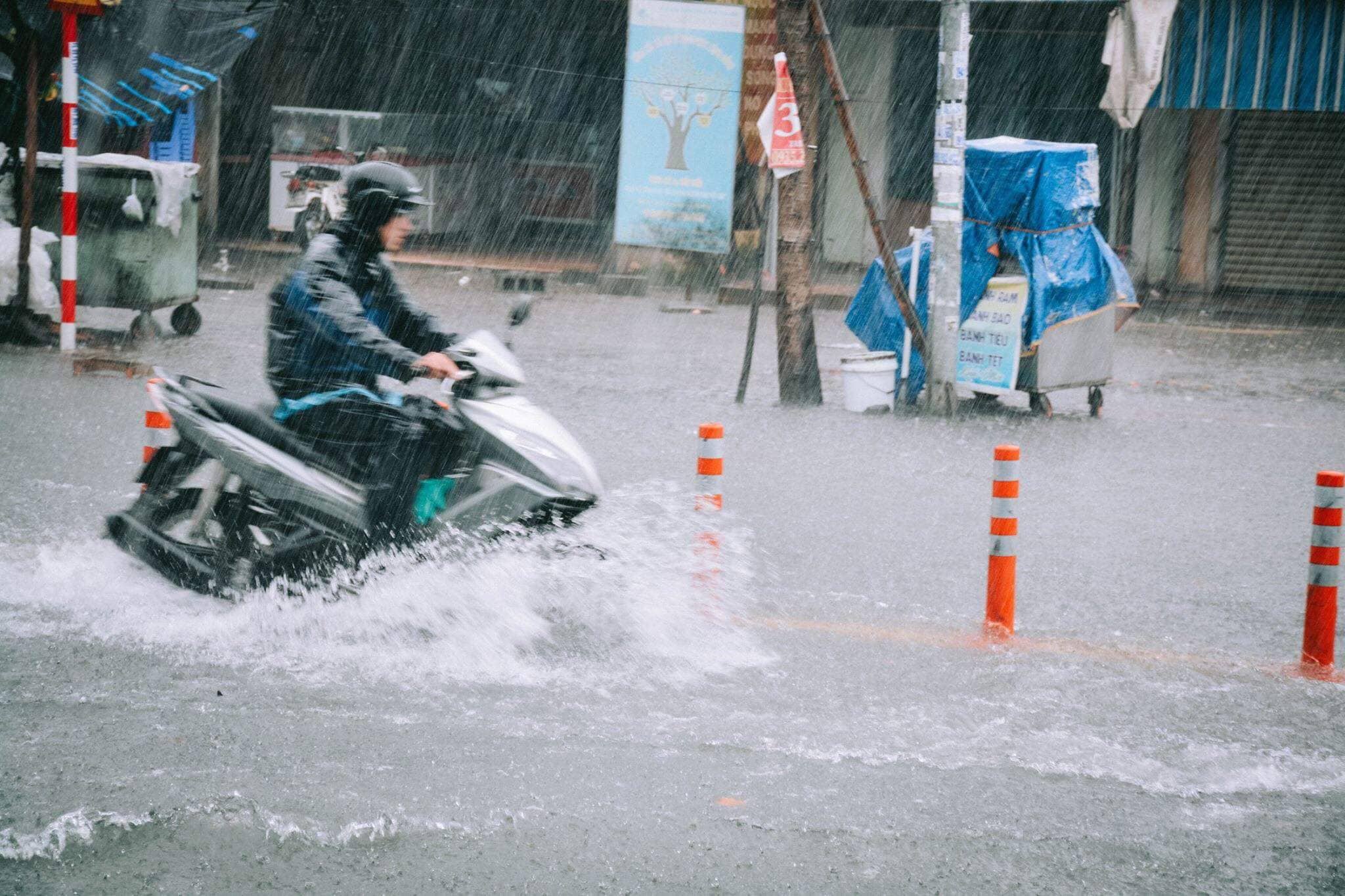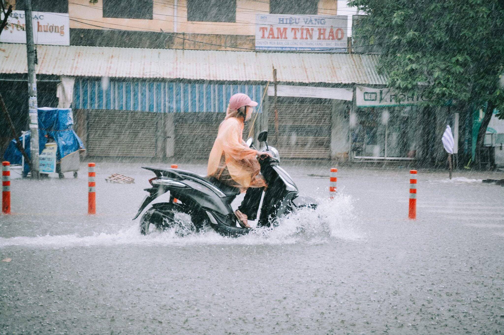 Mưa lớn kéo dài khiến nhiều tuyến đường dẫn vào các trường học bị ngập nặng. Ảnh: Nguyễn Hoàng Quân.