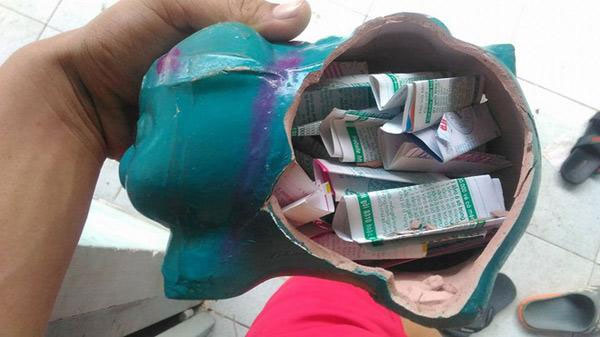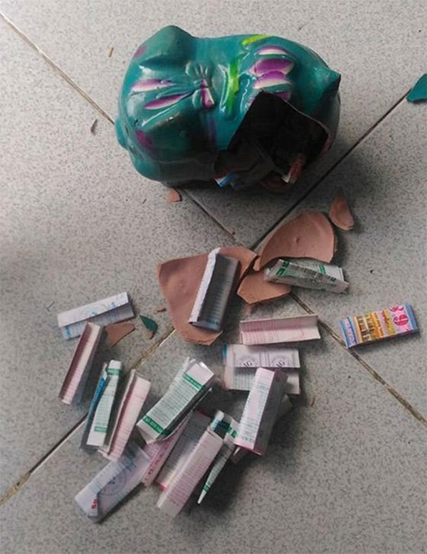 Cận cảnh con heo đất khiến nam thanh niên khóc thút thít.