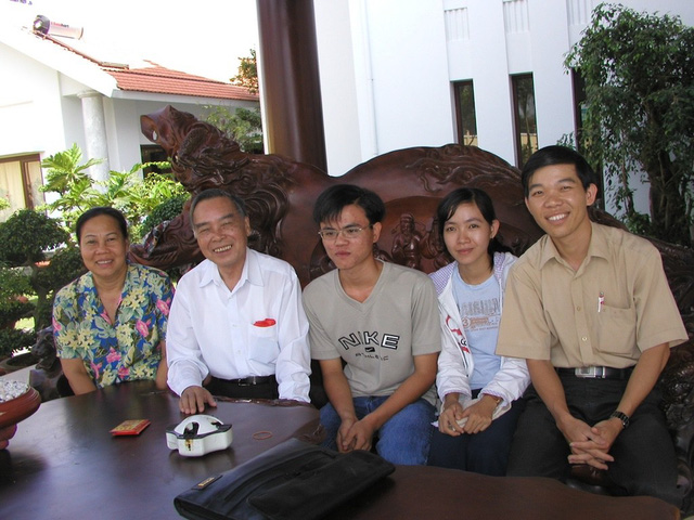 Gia đình thầy giáo Nguyễn Văn Cải trong lần thăm bác Sáu Khải gần đây nhất (ảnh NVCC)
